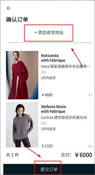 4、在【确认订单】页面,填写地址等信息,完成后点击【提交订单】,进行付款即可。