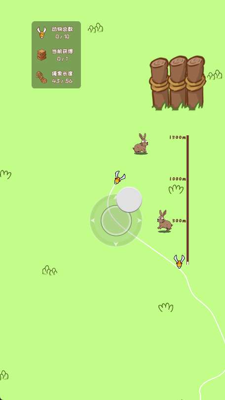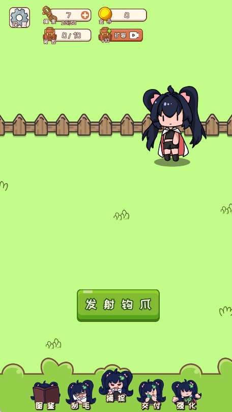 1、进入游戏点击发射爪钩,钩爪会自动向前移动碰到动物时对它造成伤套动物生命为0时会被抓到。