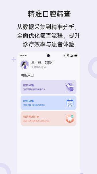 乐齿拍机构版是一款集智能采集、分析与对比为一体的专业口腔健康管理应用,通过高效的数据采集、多场景适配和AI智能分析,为患者提供精准、便捷的口腔健康服务。应用通过智能AI技术和便携式拍摄设备,实现从数据采集到精准分析的全流程优化,为用户提供全面的口腔健康支持。无论是院内专业采集,还是院外便捷拍摄,乐齿拍都能满足多场景需求,帮助用户轻松掌控口腔健康状况。