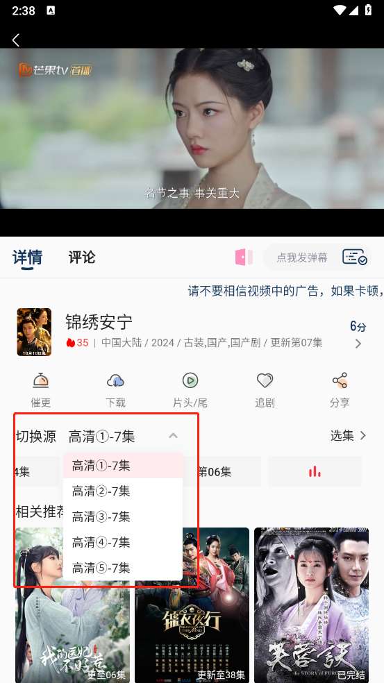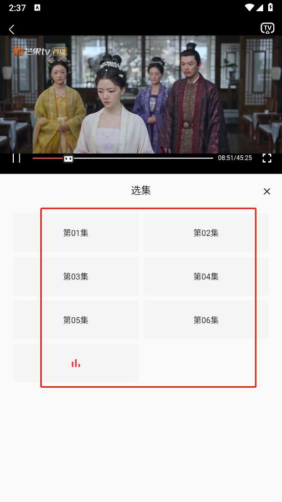 4、选择想看的剧集之后打开,选择想看的集数即可进入正片。