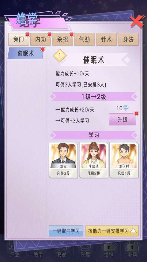 5、最后在绝学这里来培养各项属性。