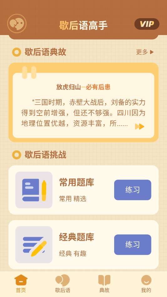 歇后语高手是一款全新的歇后语学习软件,拥有丰富多样的歇后语知识可以实时更新,随时让用户轻松掌握各种歇后语,还提供常用歇后语大全,可以自由在线练习各种歇后语,轻松提高学习成绩和水平,能完全满足所有学习需求,还拥有详细的歇后语背景,例句,解析等,轻松自由掌握各种各样的歇后语,给用户带来全面的服务,还能制定学习计划和方式,随时随地了解各种歇后语的意思,有兴趣的用户欢迎来本站下载软件。