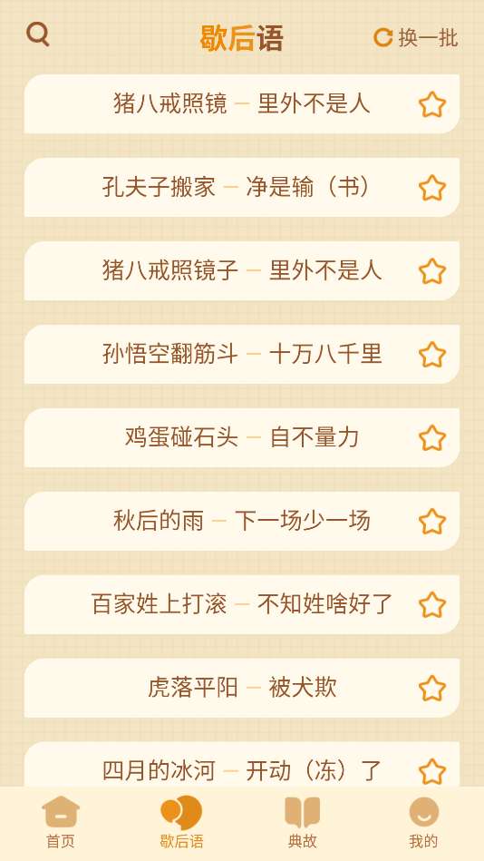 3、点击歇后语页面,可以观看阅读完整的句子,有喜欢的句子,可以点击星星收藏。