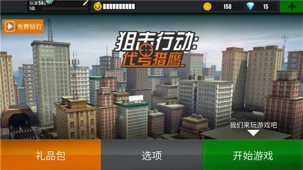 1、下载进入狙击行动代号猎鹰,点击开始游戏;