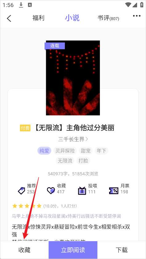 2、如果你遇到一本最喜欢的小说,只需点击书签按钮即可将其添加到书架上,以便随时阅读。
