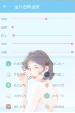 2、从手机本地相册选择好要设置的透明壁纸后,大家还可以通过进度条设置透明度,方向、宽度、高度等状态。