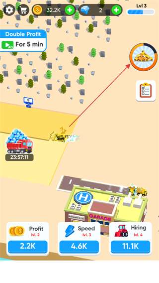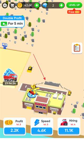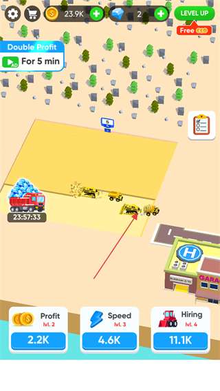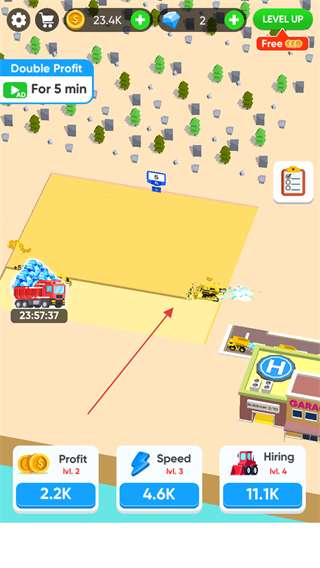 2. 轻点下方的“Hiring”按钮,消耗金币来雇佣更多推土机,从而提高挖掘效率。