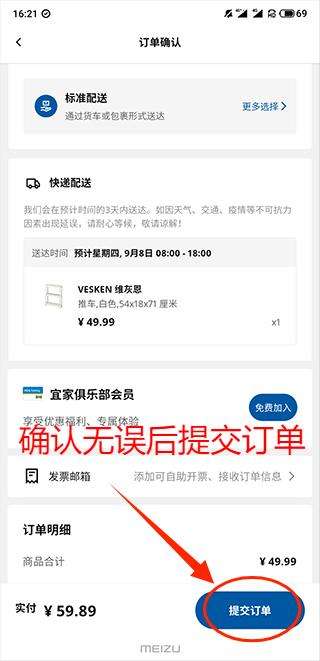 若选择配送到家方式,添加地址,点击【提交订单】进行付款即可。