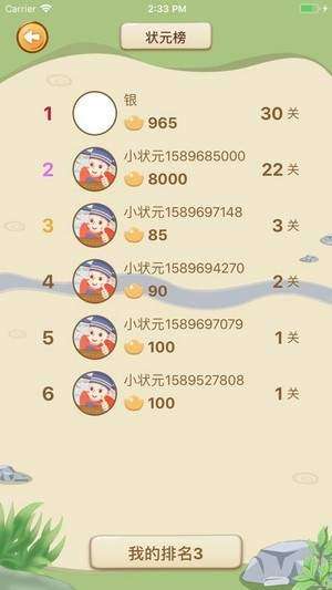 完成答题才能够获得金币的奖励,积累金币越多的玩家,在游戏里排名越高。