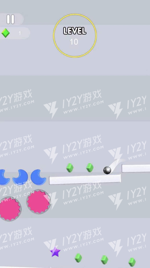 玩家点击屏幕控制小球的移动,途中躲避危险收集宝石通过关卡。