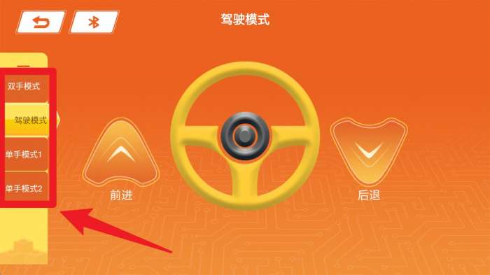 4、进入“驾驶模式”可切换双手或单手操作方式,通过方向盘和按钮控制模型前进后退。