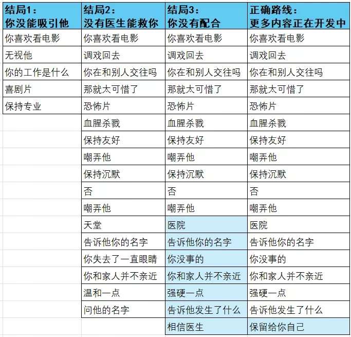 目前游戏处于测试版本,下表中的正确路线会衔接上后续游戏新开发的内容;