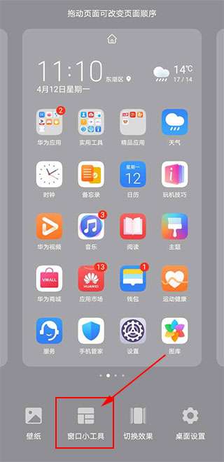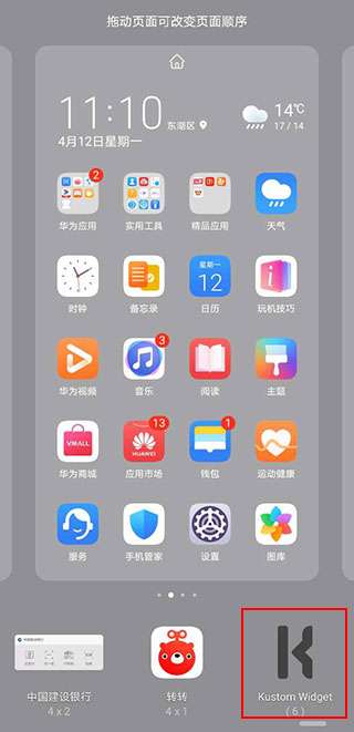 1、这里小编以华为手机为例,首先下载安装KWGT,在桌面上双指向中间滑动。