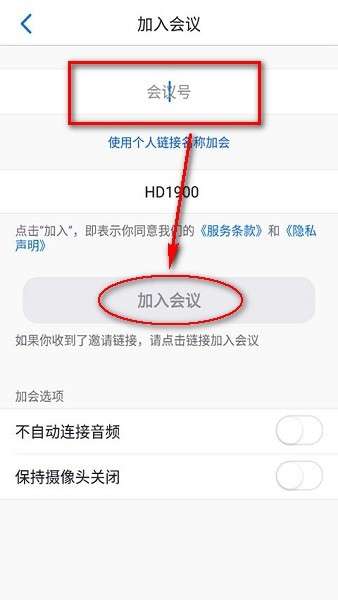 进入软件后,点击“加入会议”,输入“会议号”,点击下面的“加入会议”;