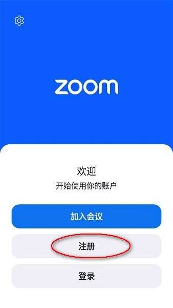 打开zoom安卓版后,新用户就点击“注册”;老用户直接登录;