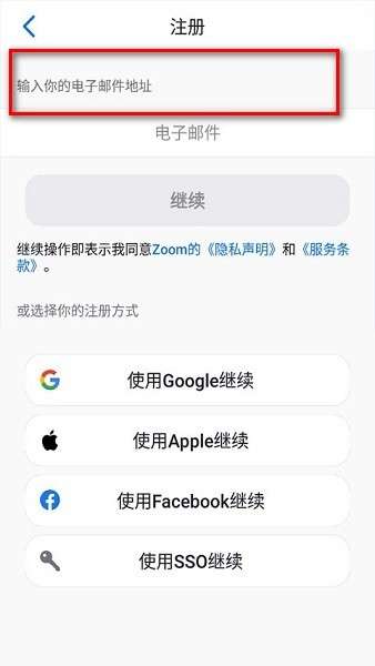 输入电子邮件地址,点击“继续”,接着按系统操作提示,完成注册即可;