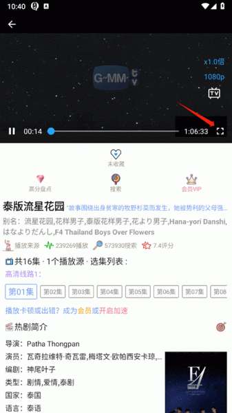 3、播放时点击一下屏幕,在显示的菜单内点击右下角全屏按钮。