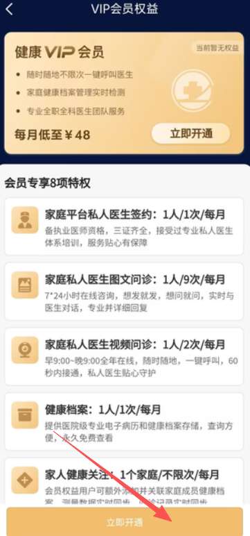 2、用户在个人中心点击立即开通,即可进入会员购买界面进行下一步操作。