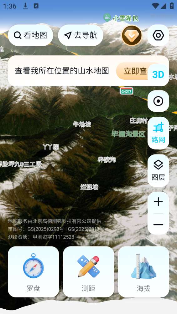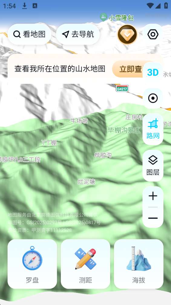 1、3D山水实景:高清三维地形,俯瞰山川脉络,细节清晰、视角自由。