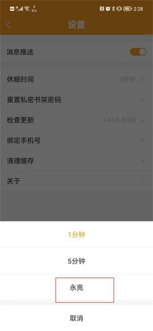 小书狐怎么关闭休眠时间?
