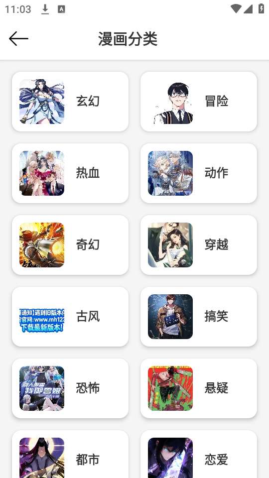 2、也可以在分类中进行搜索自己想看的漫画;