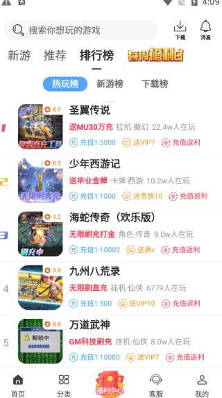 1、下载并安装软件后,您可以进入并体验各种福利游戏,如GM权益等。