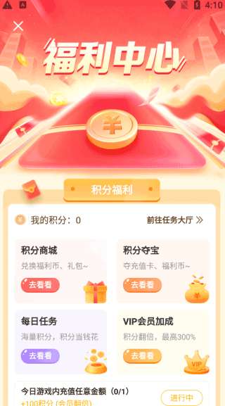 2、您还可以进入福利中心接受专属活动任务。