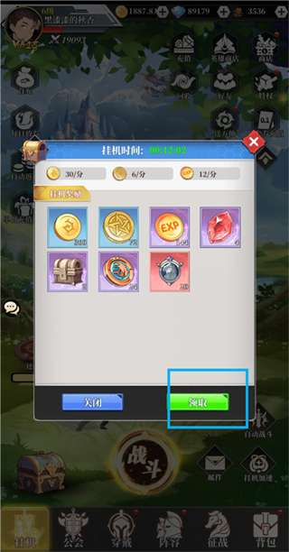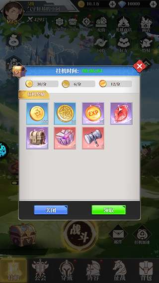 6、玩家挂机一段时间后,可领取挂机奖励。
