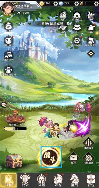 4、回到挂机界面,点击战斗开始闯关。