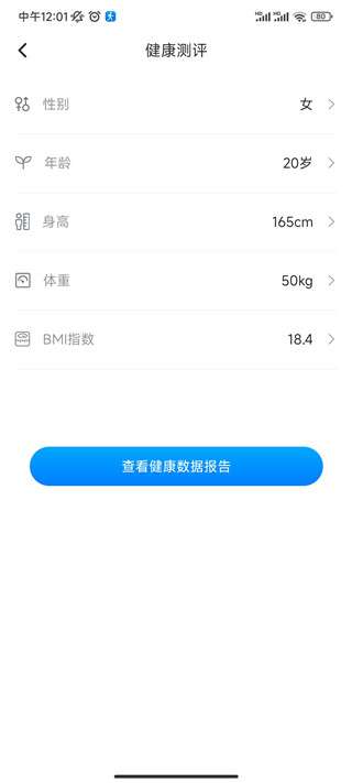 6、你还可以通过健康测评,为你记录体重、BMI指数,了解自己的身体情况。