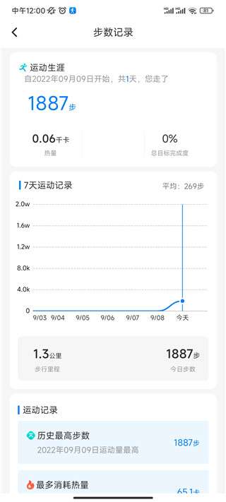 1、下载app,进入首页可以看到自己每天走的步数。