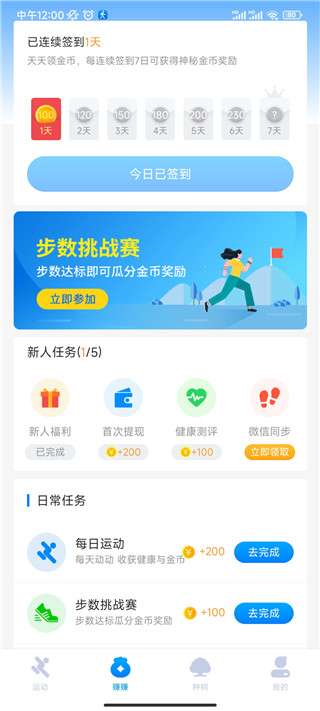 3、你也可以为你每天的步数设定目标,完成目标打卡还可获得金币。