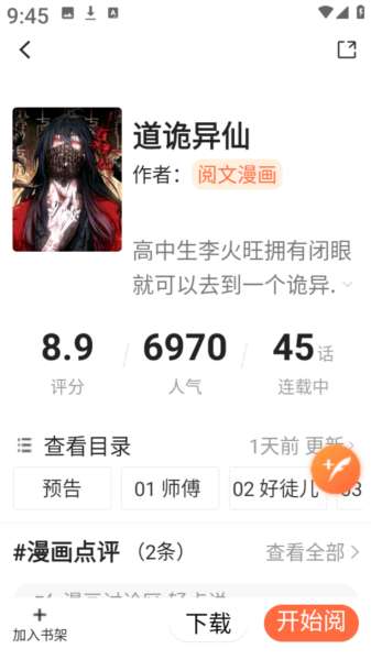 4、然后,随机选择任何你感兴趣的漫画,直接点击“开始阅读”。