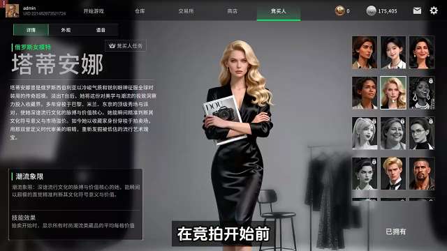 1、游戏中,玩家们需要选择一位合适的角色作为自己的竞拍人。