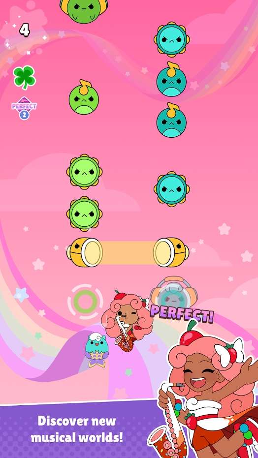 甜蜜的罪恶超级明星一个全部都会卡通小人物的世界,每一个形象都十分的可爱。在这里大家要做的就是通过不同的节奏挑战来获得攻击敌人的力量,这样就可以获得升级的机会还有积累自己想要的星星。在这里每一个卡通主题中会有一个新的挑战对手,形象的表情是那种坏坏的感觉但是外观看着还是挺可爱的。在这里包含了不同多的音乐种类,大家是根据关卡的顺序。