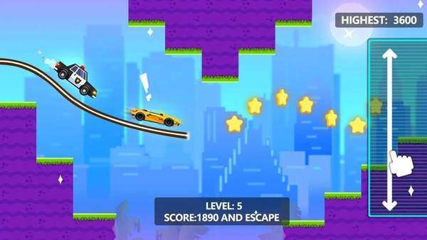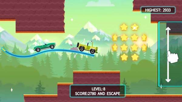 1、欢快有趣的小车驾驶闯关游戏,横版的驾驶模式,上下滑动屏幕来控制车辆移动;