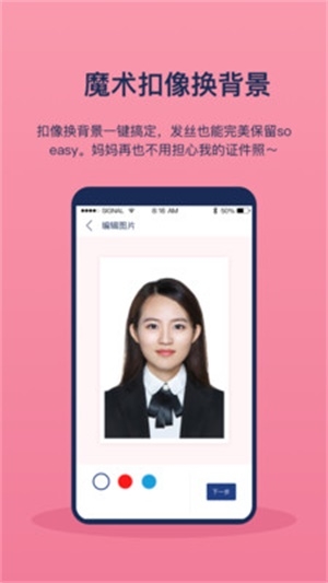 还在为了被拍的特别丑的证件照生气?消消气推荐你使用这款美照智能证件照app。这里拍出的证件照每一张都能让你非常的满意。这款app不仅可以在你拍照的时候一键美颜,还可以抠图不管是在什么背景都可以拍出正规的证件照。需要几赶紧下载吧!