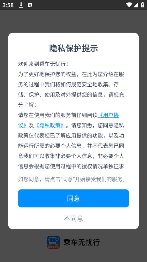 1、首先打开应用点击“同意”按钮来进入app中。