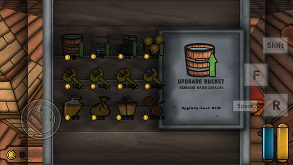 7、可以在工作台用金币换取需要的工具,如果有怪物来袭,可以拿起工具,然后点击“Shift”进行攻击,怪物被击倒后会有零件和道具掉落,攒够零件修好船,就可以通关了。