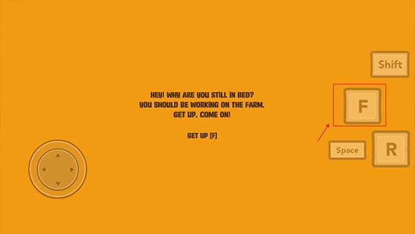 3、左边的光标可以控制角色移动,走到种子处,然后点击“F”拿起种子,去外面找乌鸦获取信息。