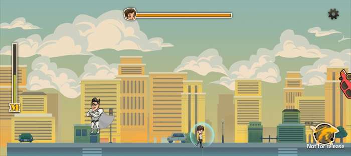 4、追逐萝莉超人时,需要注意躲避障碍物,血条清空就会导致游戏失败。