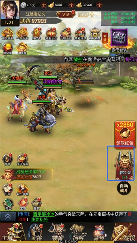 1、玩家只需要开启自动战斗,就能在离线状态下持续获取资源。让玩家无需一直在线,就能轻松积累资源并提升战斗力。
