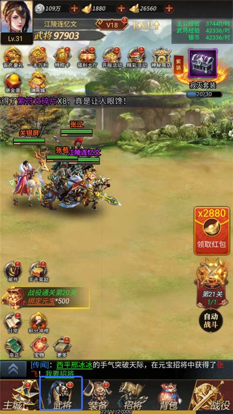 2、合理规划武将的晋升和突破,依靠晋升可以实现各方面属性的提升和专属技能的解锁,足以显著提升战斗力以应对敌人。