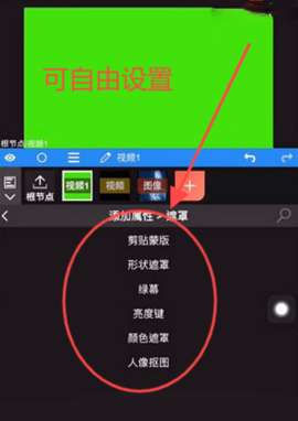 6、在幕布添加完成后还能对绿幕进行属性添加,例如加入遮罩功能,在里面找到绿幕功能。