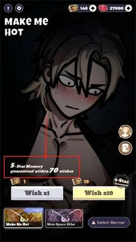 1、进入游戏,和恋与深空的抽卡界面基本一致,我们可以看到这个地方,70抽是五星保底的。