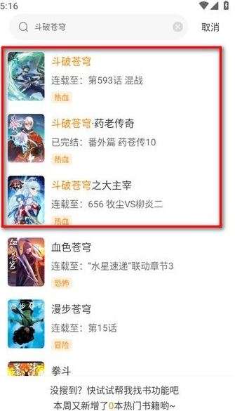 2、然后选择想看的漫画,小编这里就选择了这个人气的漫画。可以看到软件自动为你搜索了多个漫画源。