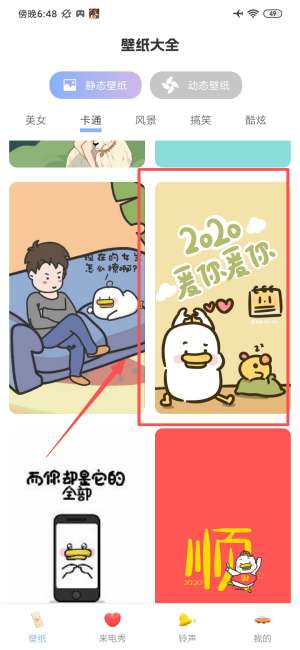 2、在卡通类别下找到目标壁纸,点击进入壁纸详情显示页面。