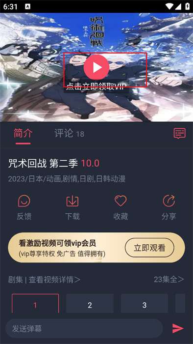 4、找到心仪的动漫后,点击"立即观看"按钮即可跳转到播放页,通过播放控件就能开始观看: