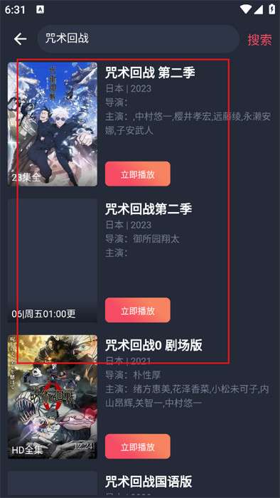 3、输入完成后,所有匹配的动漫作品都会以列表形式呈现,方便用户浏览选择: