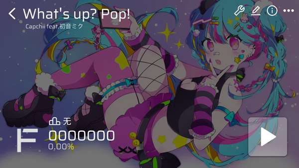 点击右上角【i】图标,进入谱面信息界面,在这里,你可以看到该谱面的歌曲名称、曲师、谱师、难度、简介、评分、分类、谱面ID。
